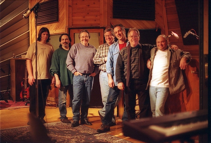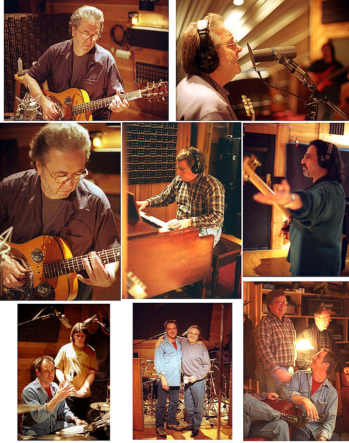 on Piano and Hammond Organ, Moe on Drums, Producer Tom Dawes, and Studio Owner